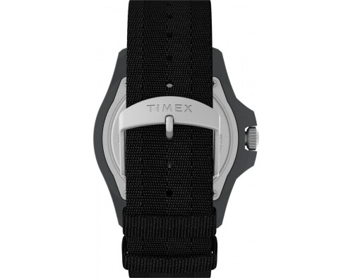 Kvarcas Vyras Rankinis laikrodis Timex TW2V40500 su Plastmasinis dėklu, 46 mm skersmens, Mineralinis stiklas, Juoda ciferblatu ir Juoda Audinys apyranke.