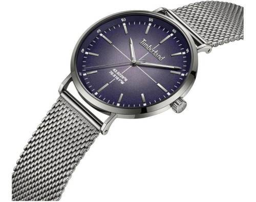 Kvarcs Cilvēks Rokas pulkstenis Timberland TDWGG2231104 ar Nerūsējošais tērauds korpusu, ar diametru 42 mm, Minerāls stikls, Zils ciparnīcu un Pelēks Milānas krekls siksnu.