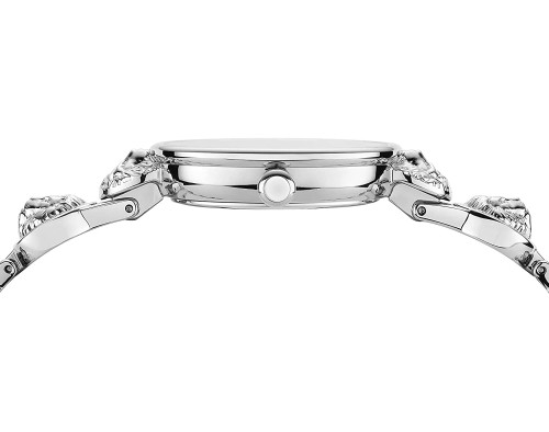 Kvarcs Sieviete Rokas pulkstenis Versus Versace VSPZU0421 ar Nerūsējošais tērauds korpusu, ar diametru 34 mm, Minerāls stikls, Sudrabs ciparnīcu un Sudrabs Nerūsējošais tērauds siksnu.