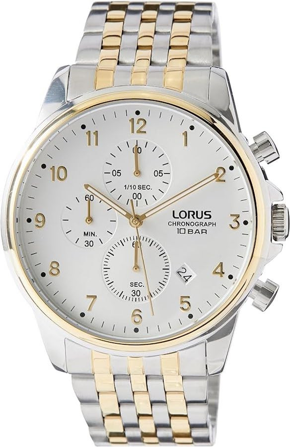 Kvarcs Cilvēks Rokas pulkstenis Lorus RM338JX9 ar Nerūsējošais tērauds korpusu, ar diametru 42 mm, Minerāls stikls, Sudrabs ciparnīcu un Divu toņu Nerūsējošais tērauds siksnu.
