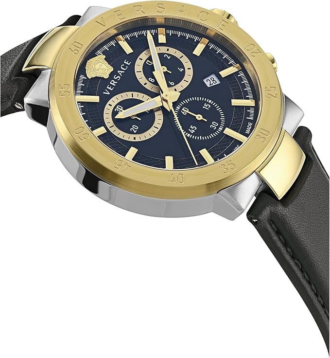 Kvarcs Cilvēks Rokas pulkstenis Versace VEPY00320 ar Nerūsējošais tērauds korpusu, ar diametru 43 mm, Minerāls ar safīru apstrādi stikls, Melns ciparnīcu un Melns Āda siksnu.