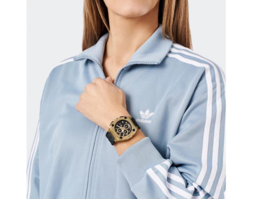 Kvarcs Unisex Rokas pulkstenis Adidas AOFH24018 ar Nerūsējošais tērauds korpusu, ar diametru 45 mm, Minerāls stikls, Melns ciparnīcu un Melns Sveķi siksnu.