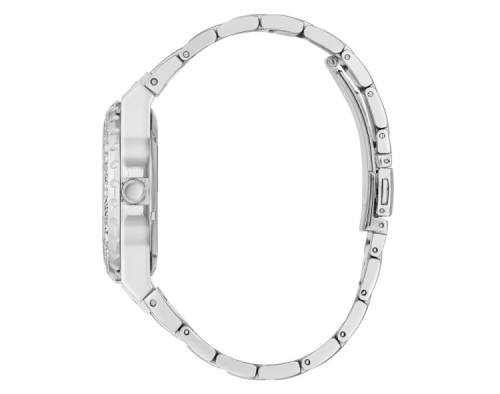 Kvarcs Sieviete Rokas pulkstenis Guess GW0302L1 ar Nerūsējošais tērauds korpusu, ar diametru 39 mm, Minerāls stikls, Caurspīdīgs ciparnīcu un Sudrabs Nerūsējošais tērauds siksnu.