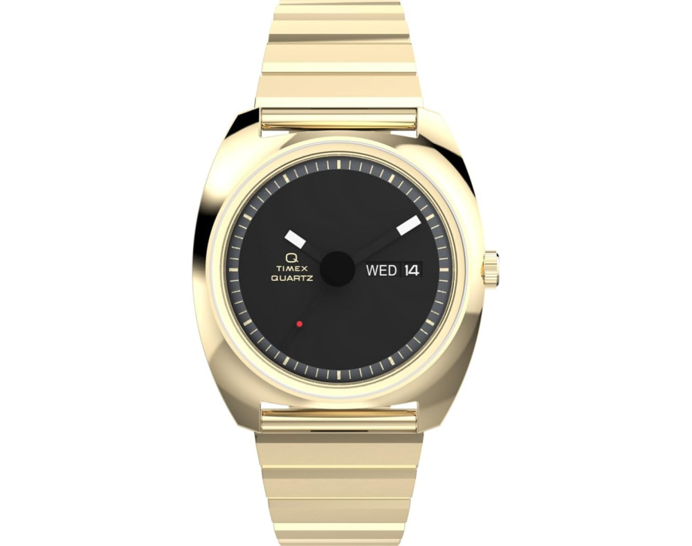 Kvarcs Cilvēks Rokas pulkstenis Timex TW2Y34400UK ar Nerūsējošais tērauds korpusu, ar diametru 37 mm, Minerāls stikls, Melns ciparnīcu un Zelts Nerūsējošais tērauds siksnu.
