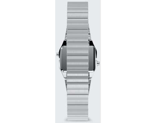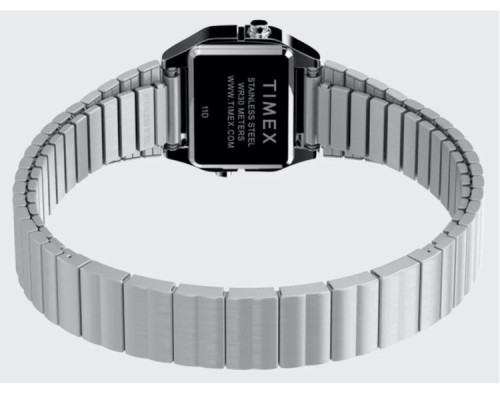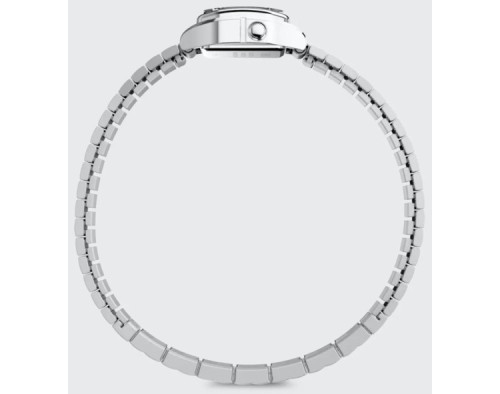 Kvarcs Sieviete Rokas pulkstenis Timex TW2Y46500UK ar Nerūsējošais tērauds korpusu, ar diametru 20 mm, Akrils stikls, Sudrabs ciparnīcu un Sudrabs Nerūsējošais tērauds siksnu.