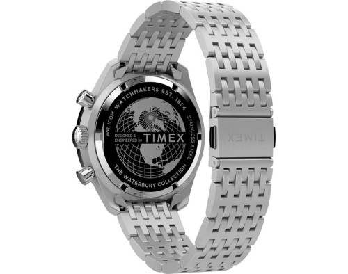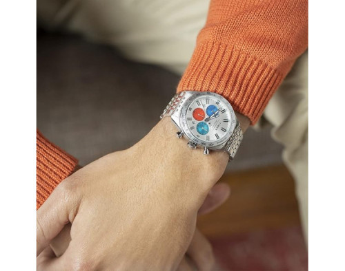 Kvarcs Cilvēks Rokas pulkstenis Timex TW2V42400UK ar Nerūsējošais tērauds korpusu, ar diametru 41 mm, Minerāls stikls, Daudzkrāsains ciparnīcu un Sudrabs Nerūsējošais tērauds siksnu.