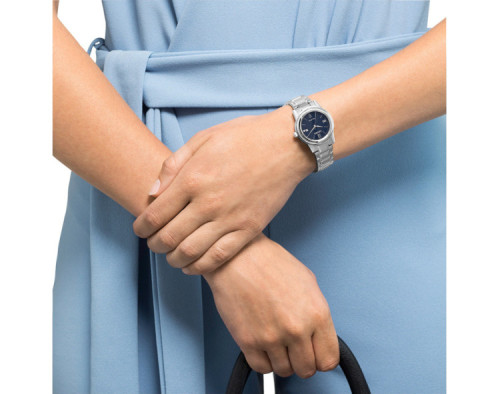Kvarcs Sieviete Rokas pulkstenis Citizen FE1220-89L ar Nerūsējošais tērauds korpusu, ar diametru 30 mm, Minerāls stikls, Zils ciparnīcu un Sudrabs Nerūsējošais tērauds siksnu.