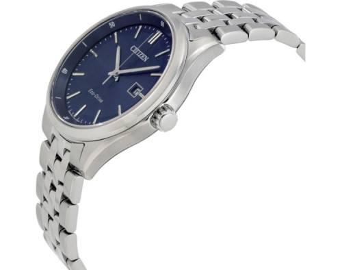 Armbanduhr Citizen Eco Drive BM7251-53L für Herren mit Quarzwerk, Uhrengehäuse aus Edelstahl mit einem Durchmesser von 41 mm, Ziffernblatt Blau und Uhrenarmband aus Edelstahl in der Farbe Silber.