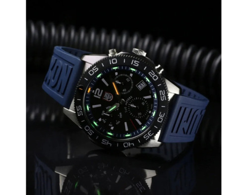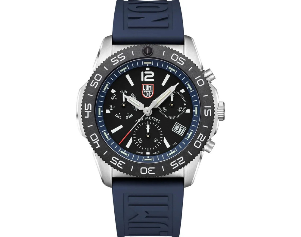 Armbanduhr Luminox Pacific Diver XS.3143 für Herren mit Quarzwerk, Uhrengehäuse aus Edelstahl mit einem Durchmesser von 44 mm, Ziffernblatt Schwarz und Uhrenarmband aus Kautschuk in der Farbe Blau.