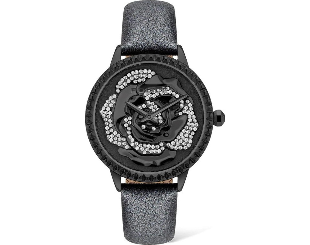 Armbanduhr Police Mopion PL16073BSB/02 für Damen mit Quarzwerk, Uhrengehäuse aus Edelstahl mit einem Durchmesser von 32 mm, Ziffernblatt Schwarz und Uhrenarmband aus Leder in der Farbe Schwarz.