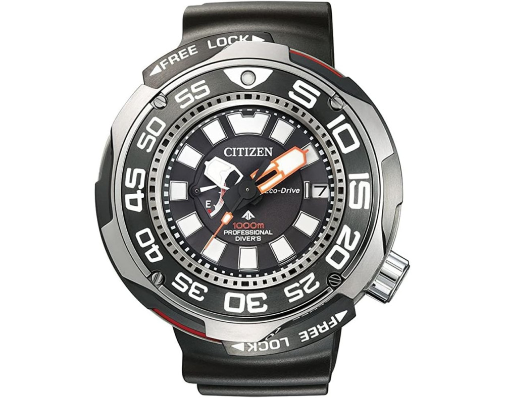 Armbanduhr Citizen Promaster BN7020-09E für Herren mit Quarzwerk, Uhrengehäuse aus Titan mit einem Durchmesser von 52 mm, Ziffernblatt Schwarz und Uhrenarmband aus Kautschuk in der Farbe Schwarz.