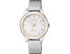 Armbanduhr Citizen Eco-Drive EM0504-81A für Damen mit Quarzwerk, Uhrengehäuse aus Edelstahl mit einem Durchmesser von 32 mm, Ziffernblatt Weiß und Uhrenarmband aus Mesh armband in der Farbe Silber.