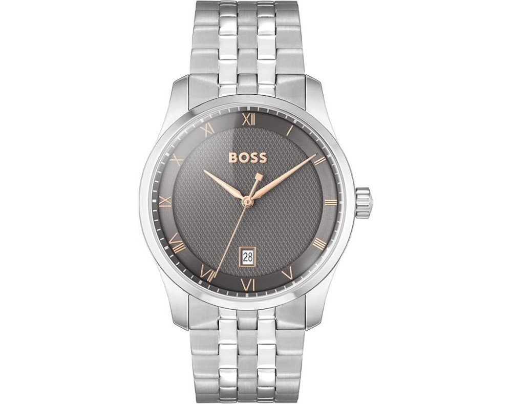 Reloj de pulsera Hugo Boss Principle 1514116 para Hombre con movimento de Cuarzo, con caja de Acero inoxidable con diàmetro de 41 mm, con cuadrante Gris y correa en Acero inoxidable, color Plateado.
