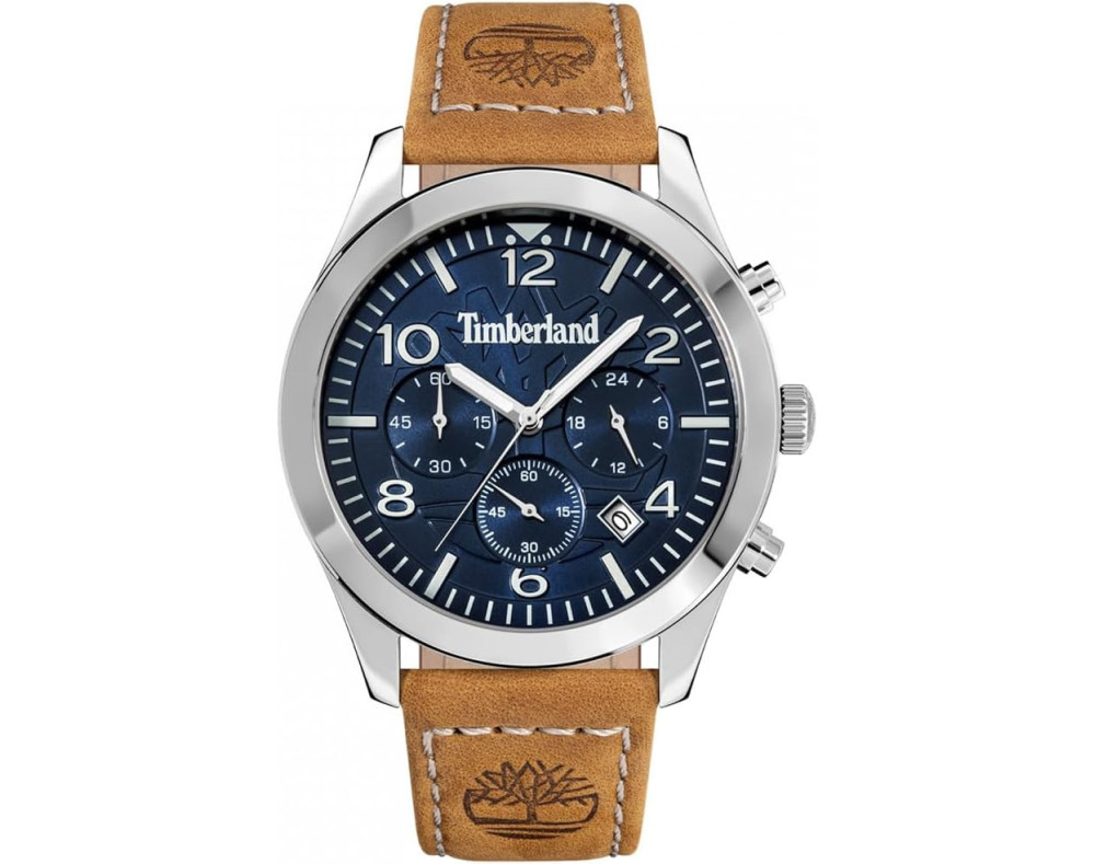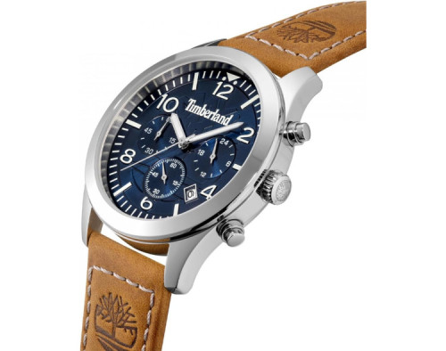 Kvarts Mees Käekell Timberland TDWGC0068801, Roostevaba teras korpusega, läbimõõduga 45 mm, Mineraal klaasist, Sinine sihverplaadi ja Pruun Nahk rihm.