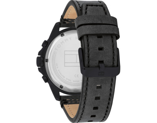 Kvarts Mees Käekell Tommy Hilfiger 1791893, Roostevaba teras korpusega, läbimõõduga 46 mm, Mineraal klaasist, Must sihverplaadi ja Must Nahk rihm.