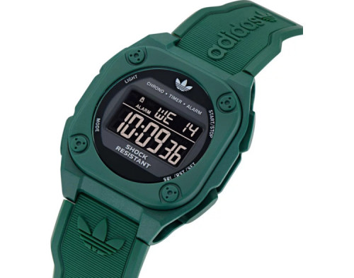 Kvarts Unisex Käekell Adidas AOST25032, Plastikust korpusega, läbimõõduga 43 mm, Akrüül klaasist, Must sihverplaadi ja Roheline Silikoon rihm.