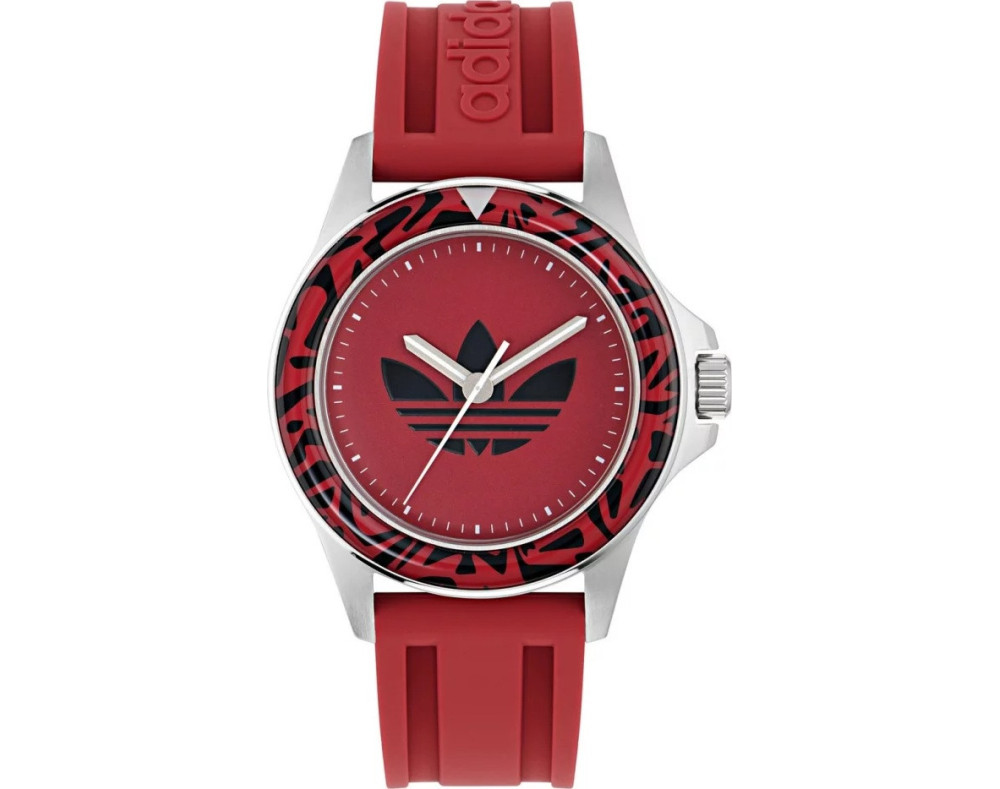 Kvarts Unisex Käekell Adidas AOFH24513, Roostevaba teras korpusega, läbimõõduga 44 mm, Mineraal klaasist, Punane sihverplaadi ja Punane Silikoon rihm.