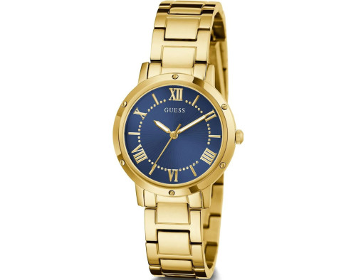 Kvarts Naine Käekell Guess GW0404L4, Roostevaba teras korpusega, läbimõõduga 34 mm, Mineraal klaasist, Sinine sihverplaadi ja Kuldne Roostevaba teras rihm.