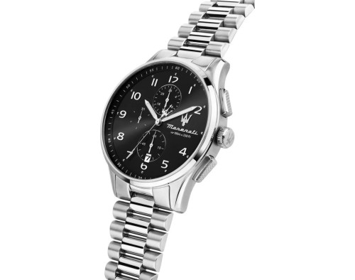Kvarts Mees Käekell Maserati R8873624007, Roostevaba teras korpusega, läbimõõduga 42 mm, Mineraal klaasist, Must sihverplaadi ja Hõbedane Roostevaba teras rihm.