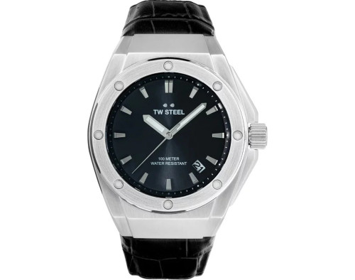 Kvarts Mees Käekell TW Steel TWCE4108, Roostevaba teras korpusega, läbimõõduga 44 mm, Safiiri töötlusega mineraal klaasist, Hall sihverplaadi ja Must Nahk rihm.