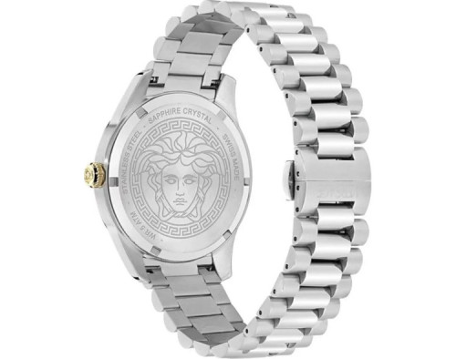 Kvarts Mees Käekell Versace VE0U00125, Roostevaba teras korpusega, läbimõõduga 41 mm, Safiiri töötlusega mineraal klaasist, Sinine sihverplaadi ja Hõbedane Roostevaba teras rihm.