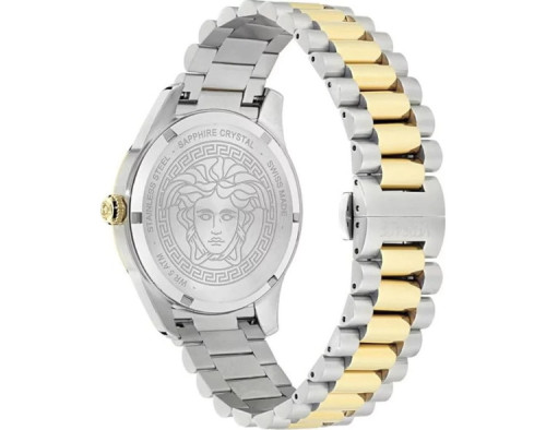 Kvarts Mees Käekell Versace VE0U00325, Roostevaba teras korpusega, läbimõõduga 41 mm, Safiiri töötlusega mineraal klaasist, Hõbedane sihverplaadi ja Kahetooniline Roostevaba teras rihm.