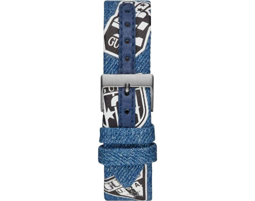 Kvarts Unisex Käekell Guess V1004M1, Roostevaba teras korpusega, läbimõõduga 42 mm, Mineraal klaasist, Mitmevärviline sihverplaadi ja Sinine Nahk rihm.