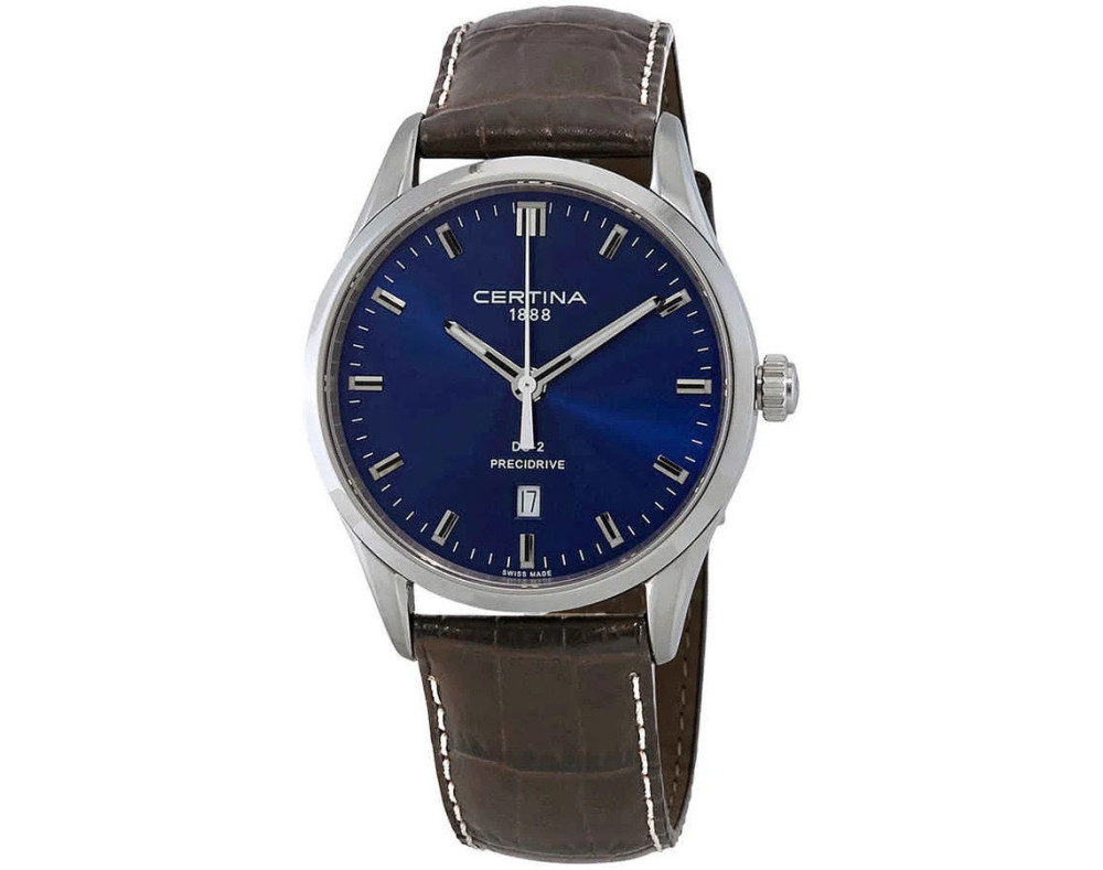 Kvarts Mees Käekell Certina C024.410.16.041.20, Roostevaba teras korpusega, läbimõõduga 40 mm, Safiiri töötlusega mineraal klaasist, Sinine sihverplaadi ja Pruun Nahk rihm.