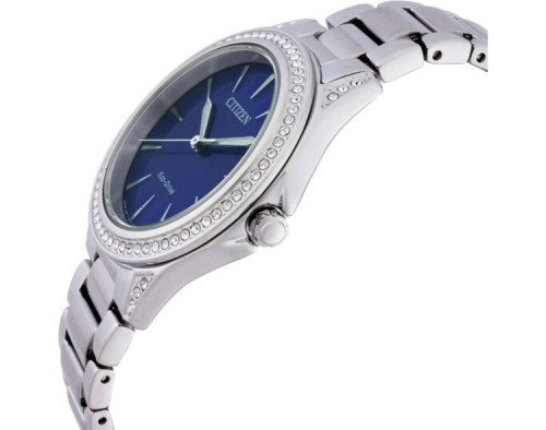 Kvarts Naine Käekell Citizen EM0940-54L, Roostevaba teras korpusega, läbimõõduga 34 mm, Mineraal klaasist, Sinine sihverplaadi ja Hõbedane Roostevaba teras rihm.