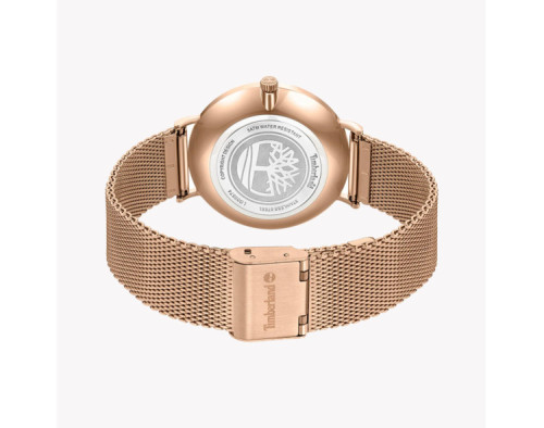 Montre bracelet Timberland Sumter TDWLG0057404-SA pour Femme à Quartz, avec une boîtier de Acier inoxydable d’un diamètre de 38 mm, avec un cadran Argent et avec un bracelet de Maille milanaise en couleur Or rose.