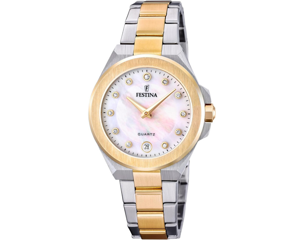 Montre bracelet Festina Mademoiselle F20702/1 pour Femme à Quartz, avec une boîtier de Acier inoxydable d’un diamètre de 33 mm, avec un cadran Nacre et avec un bracelet de Acier inoxydable en couleur Deux tons.