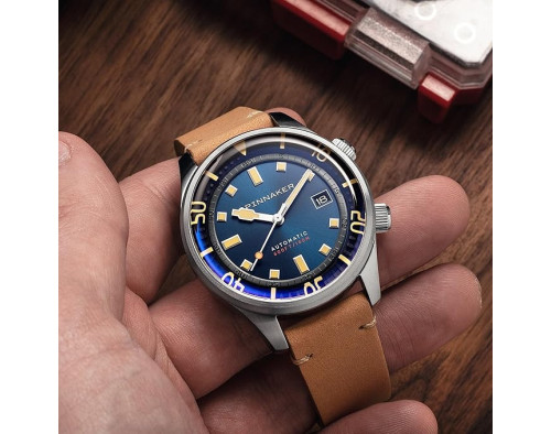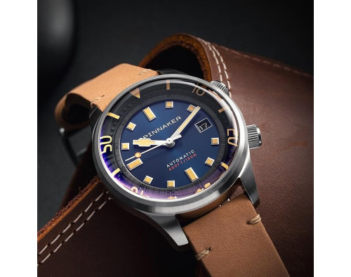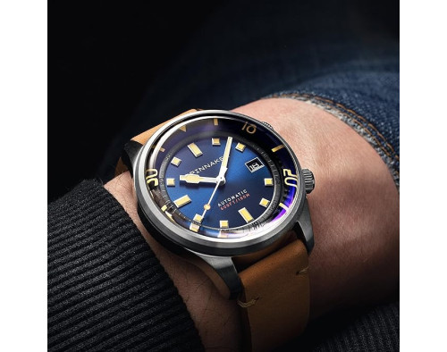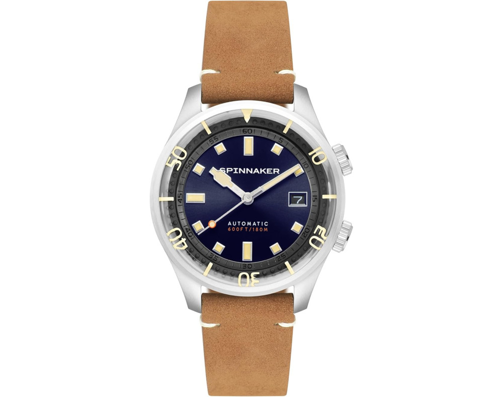 Montre bracelet Spinnaker Bradner SP-5062-05 pour Homme à Mécanique, avec une boîtier de Acier inoxydable d’un diamètre de 42 mm, avec un cadran Bleu et avec un bracelet de Cuir en couleur Marron.