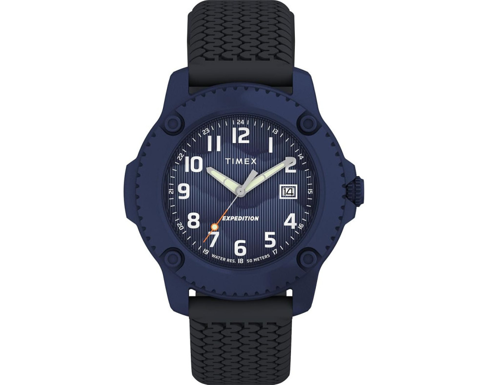 Montre bracelet Timex Expedition TW4B34600VQ pour Homme à Quartz, avec une boîtier de Aluminium d’un diamètre de 42 mm, avec un cadran Bleu et avec un bracelet de Silicone en couleur Noir.