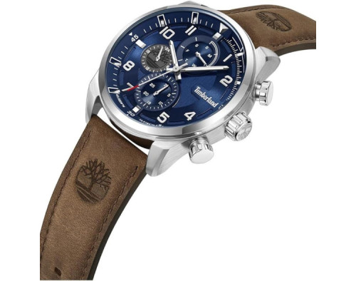 Quartz Man Wristwatch Timberland Henniker II TDWGF2201106 with Stainless steel case, with diameter 46 mm, Blue dial and Brown Leather band.