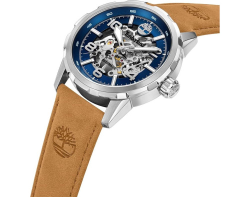 Mechanical Man Wristwatch Timberland Montville TDWGE0041801 with Stainless steel case, with diameter 46 mm, Blue dial and Brown Leather band.