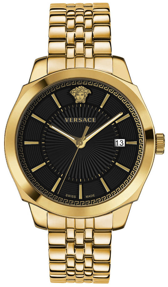 Quartz Man Wristwatch Versace Icon Classic VEV901723 with Stainless steel case, with diameter 42 mm, Black dial and Gold Stainless steel band.
