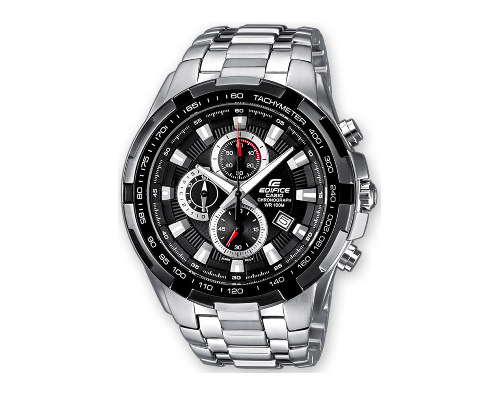 Quartz Man Wristwatch Casio Edifice EF-539D-1AVEF with Stainless steel case, with diameter 49 mm, Black dial and Silver Stainless steel band.