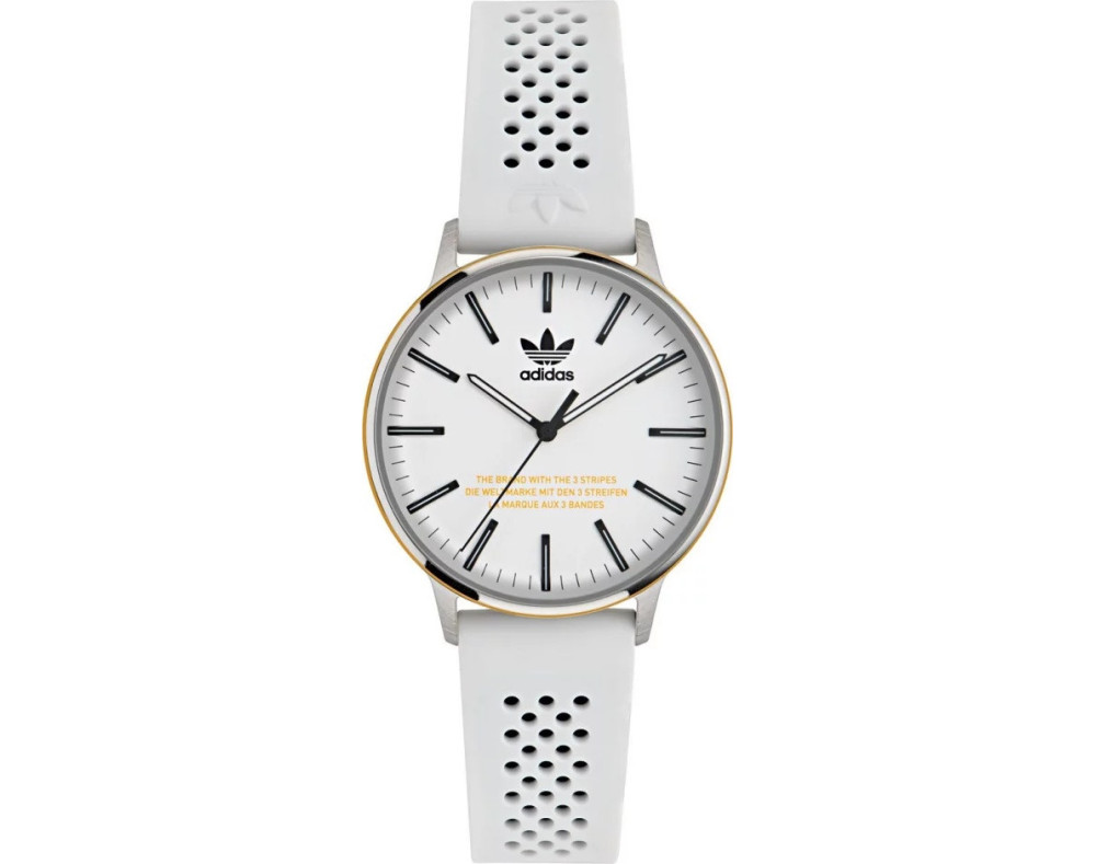 Quartz Unisex Wristwatch Adidas Code One AOSY24046 with Stainless steel case, with diameter 38 mm, White dial and White Silicon band.