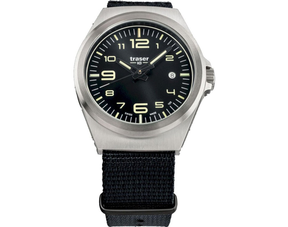 Quartz Man Wristwatch Traser P59 Essential M 108638 with Stainless steel case, with diameter 42 mm, Black dial and Black Fabric band.