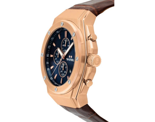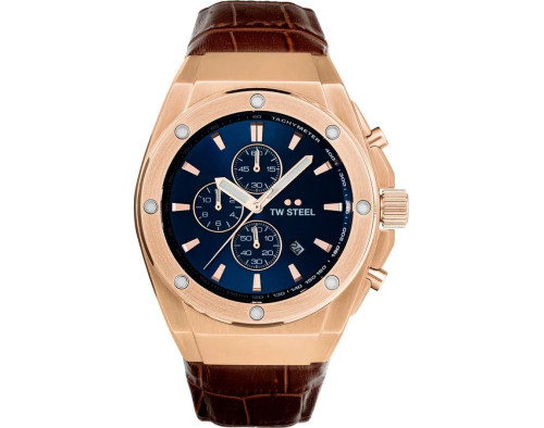 Orologio da polso TW Steel CEO Tech TWCE4106 Cronografo Uomo con movimento Al quarzo, cassa in Acciaio inossidabile di diametro 44 mm, quadrante Blu, vetro Minerale con trattamento Zaffiro e cinturino in Pelle di colore Marrone.