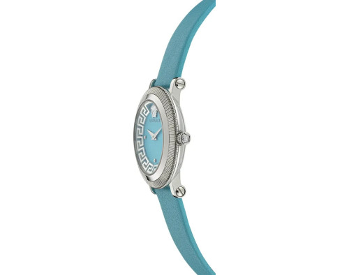 Orologio da polso Versace Greca Flourish VE7F00123 Analogico Donna con movimento Al quarzo, cassa in Acciaio inossidabile di diametro 35 mm, quadrante Turchese, vetro Minerale con trattamento Zaffiro e cinturino in Pelle di colore Turchese.