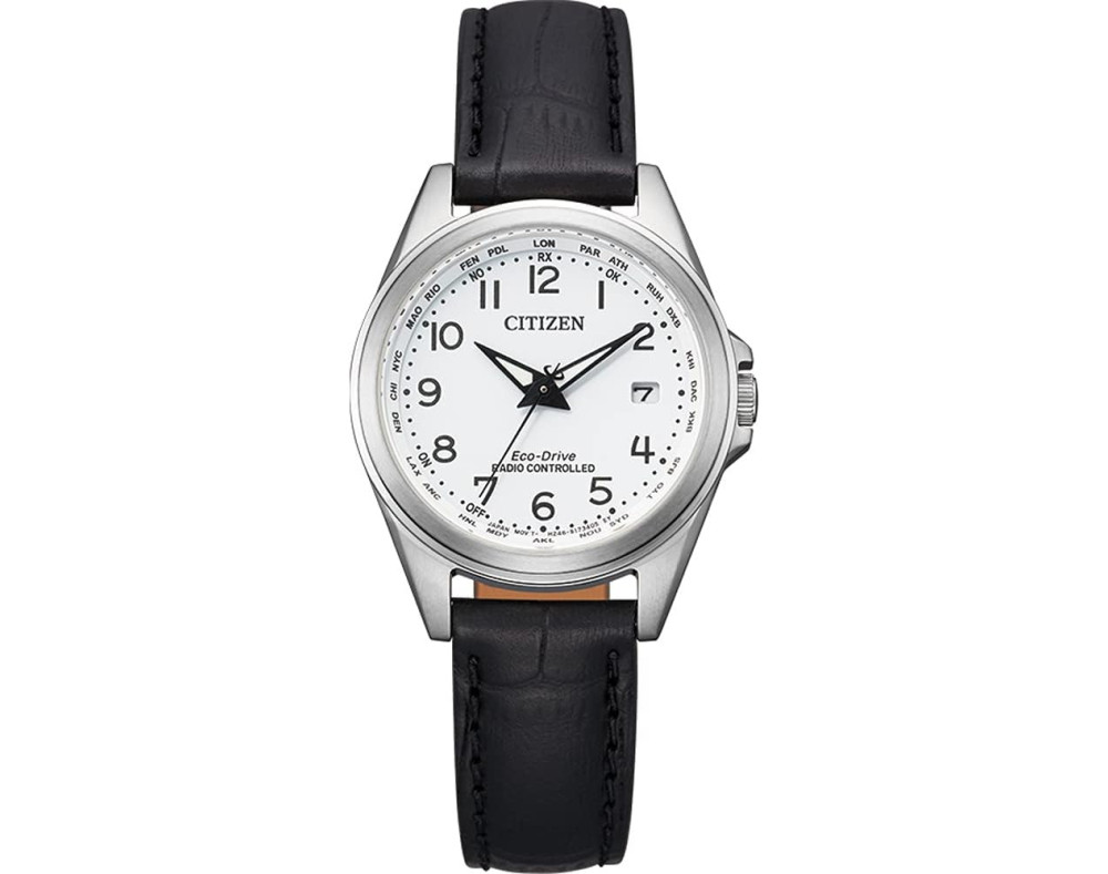 Orologio da polso Citizen Eco-Drive EC1180-14A Analogico Donna con movimento Al quarzo, cassa in Acciaio inossidabile di diametro 29 mm, quadrante Bianco, vetro Minerale con trattamento Zaffiro e cinturino in Pelle di colore Nero.