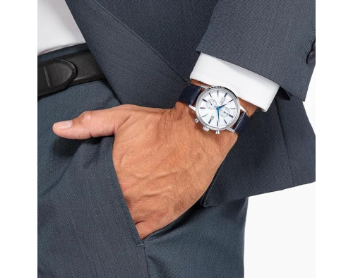 Orologio da polso Citizen Eco-Drive CA7069-16A Cronografo Uomo con movimento Al quarzo, cassa in Acciaio inossidabile di diametro 42 mm, quadrante Bianco, vetro Minerale e cinturino in Pelle di colore Blu.