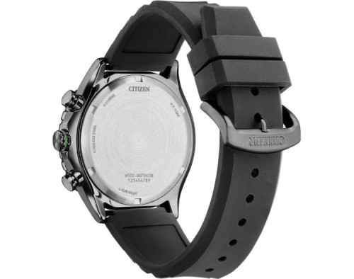 Orologio da polso Citizen Eco-Drive AT2565-05E Cronografo Uomo con movimento Al quarzo, cassa in Acciaio inossidabile di diametro 43 mm, quadrante Nero, vetro Minerale e cinturino in Silicone di colore Nero.