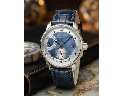 Orologio da polso Zeppelin Friedrichshafen 8590-3 Analogico Uomo con movimento Meccanico, cassa in Acciaio inossidabile di diametro 42 mm, quadrante Azzurro, vetro Minerale K1 e cinturino in Pelle di colore Blu.