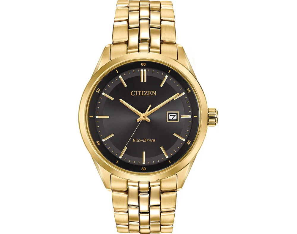 Orologio da polso Citizen Addysen BM7252-51E Analogico Uomo con movimento Al quarzo, cassa in Acciaio inossidabile di diametro 41 mm, quadrante Nero, vetro Minerale con trattamento Zaffiro e cinturino in Acciaio inossidabile di colore Oro.