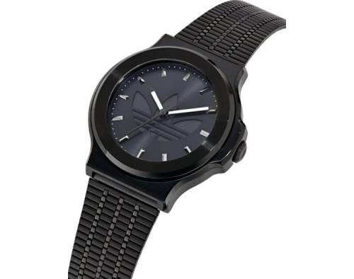 Kvarcas Unisex Rankinis laikrodis Adidas AOFH25504 su Nerūdijantis plienas dėklu, 41 mm skersmens, Mineralinis stiklas, Juoda ciferblatu ir Juoda Nerūdijantis plienas apyranke.