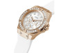 Kvarcas Moteris Rankinis laikrodis Guess GW0118L4 su Nerūdijantis plienas dėklu, 39 mm skersmens, Mineralinis stiklas, Baltas ciferblatu ir Baltas Silikonas apyranke.