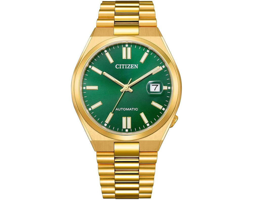 Mechaninis Vyras Rankinis laikrodis Citizen NJ0152-51X su Nerūdijantis plienas dėklu, 40 mm skersmens, Mineralas su safyru stiklas, Žalias ciferblatu ir Auksas Nerūdijantis plienas apyranke.