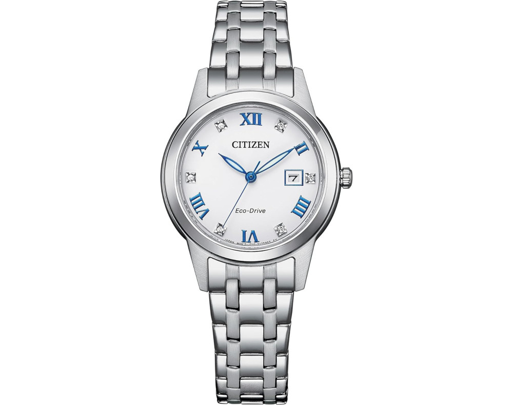Kvarcas Moteris Rankinis laikrodis Citizen FE1240-57A su Nerūdijantis plienas dėklu, 29 mm skersmens, Mineralinis stiklas, Baltas ciferblatu ir Sidabras Nerūdijantis plienas apyranke.